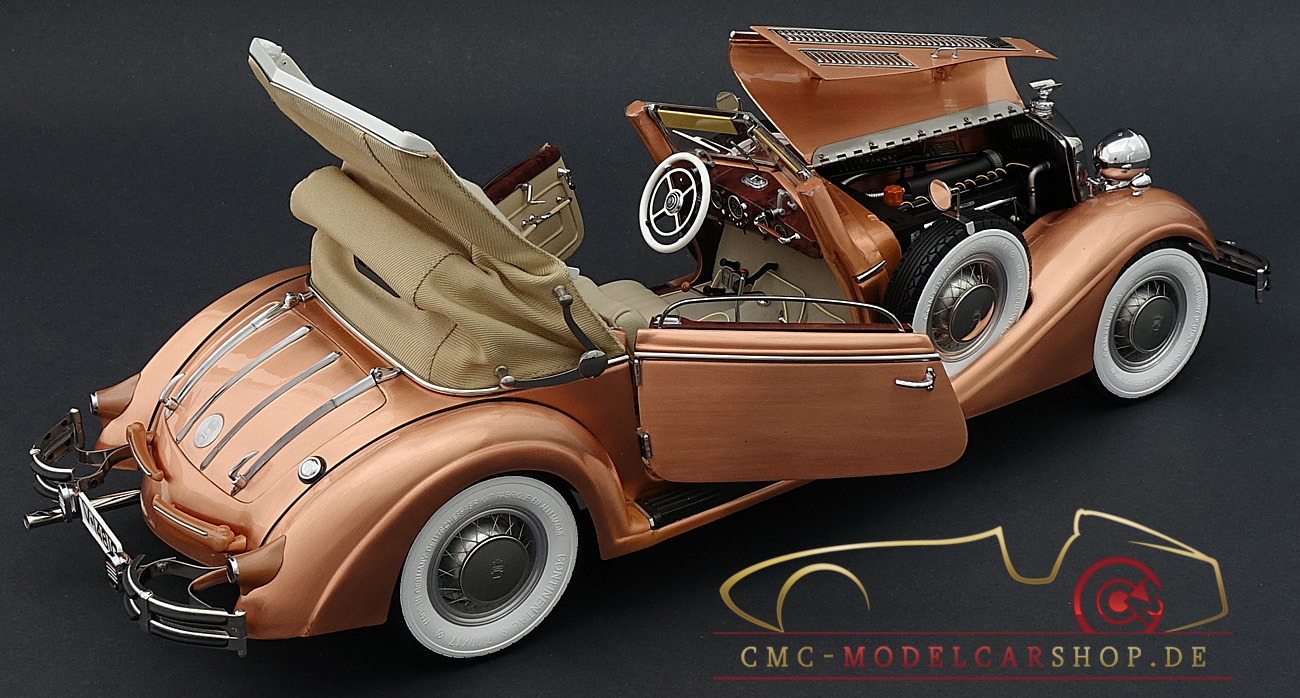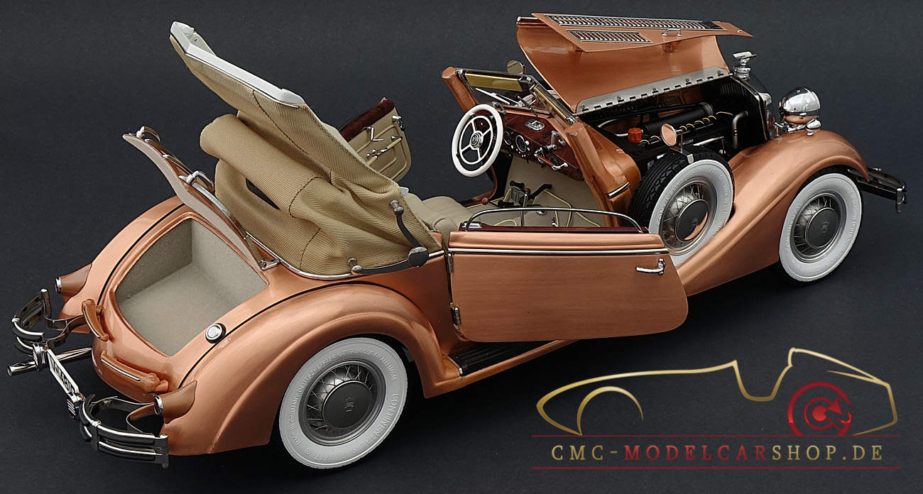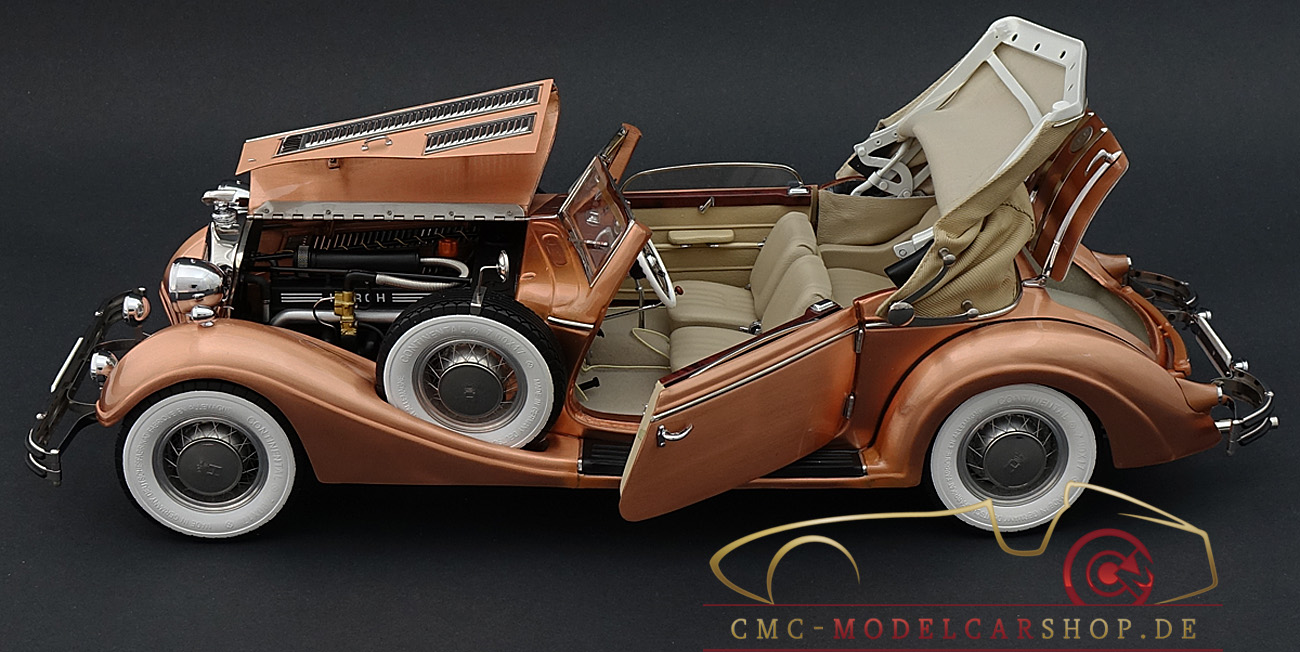 Auch heute noch wirkt dieser Horch so faszinierend wie damals. Um sein Flair voll zur Geltung zu bringen hat CMC beim Nachbau den großen Maßstab 1:12 gewählt und kann Ihnen nun ein CMC Modellauto von außergewöhnlicher Ausstrahlung, Eleganz und Wertschöpfung anbieten, das sich durch seine große Liebe zum Detail auszeichnet.