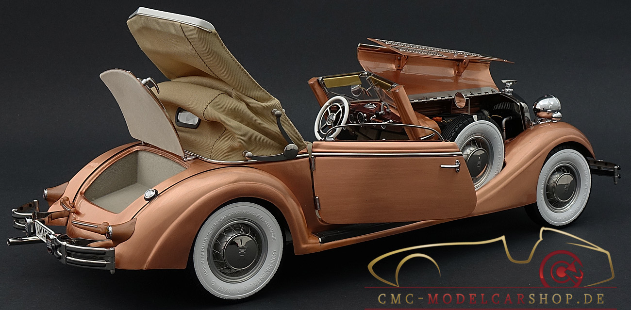- Das voll funktionsfähige Stoff-Faltverdeck stellt ein Novum im Modellbau dar.