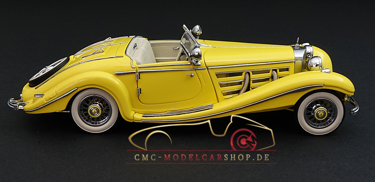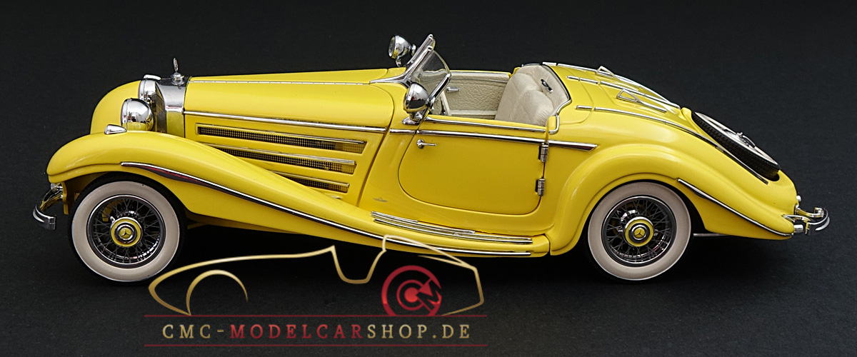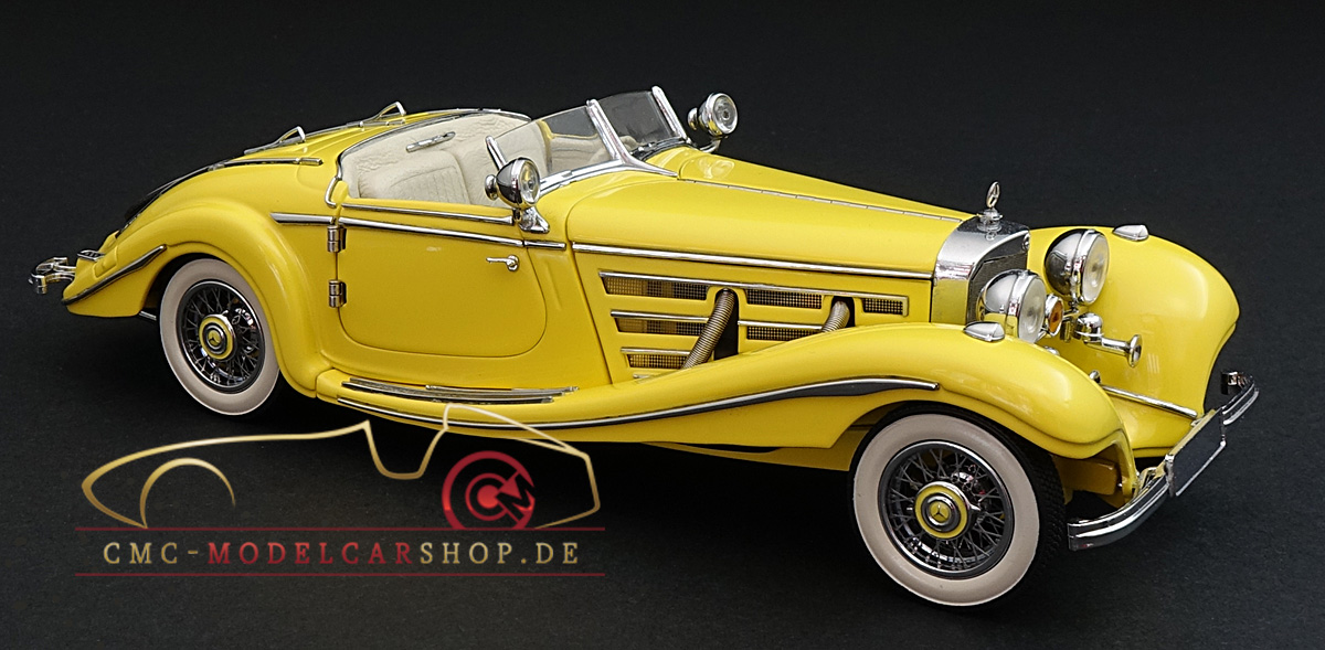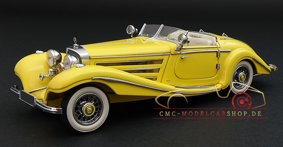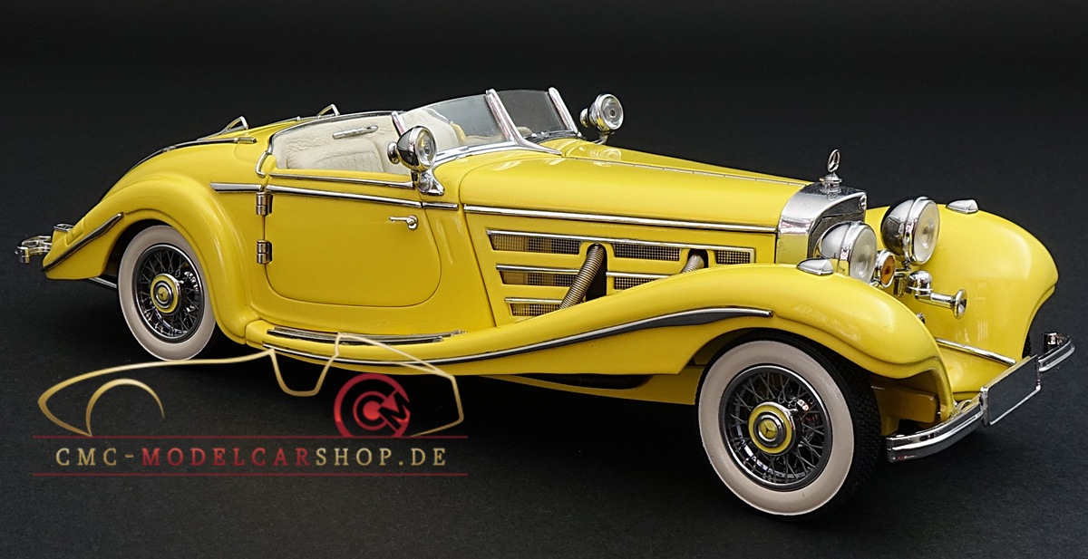 Der CMC Mercedes-Benz 500K Roadster im Maßstab 1:24, M-002G (gelb) in der Original CMC-Verpackung mit CMC-Zertifikat ist in der CMC-History bisher unbekannt.
