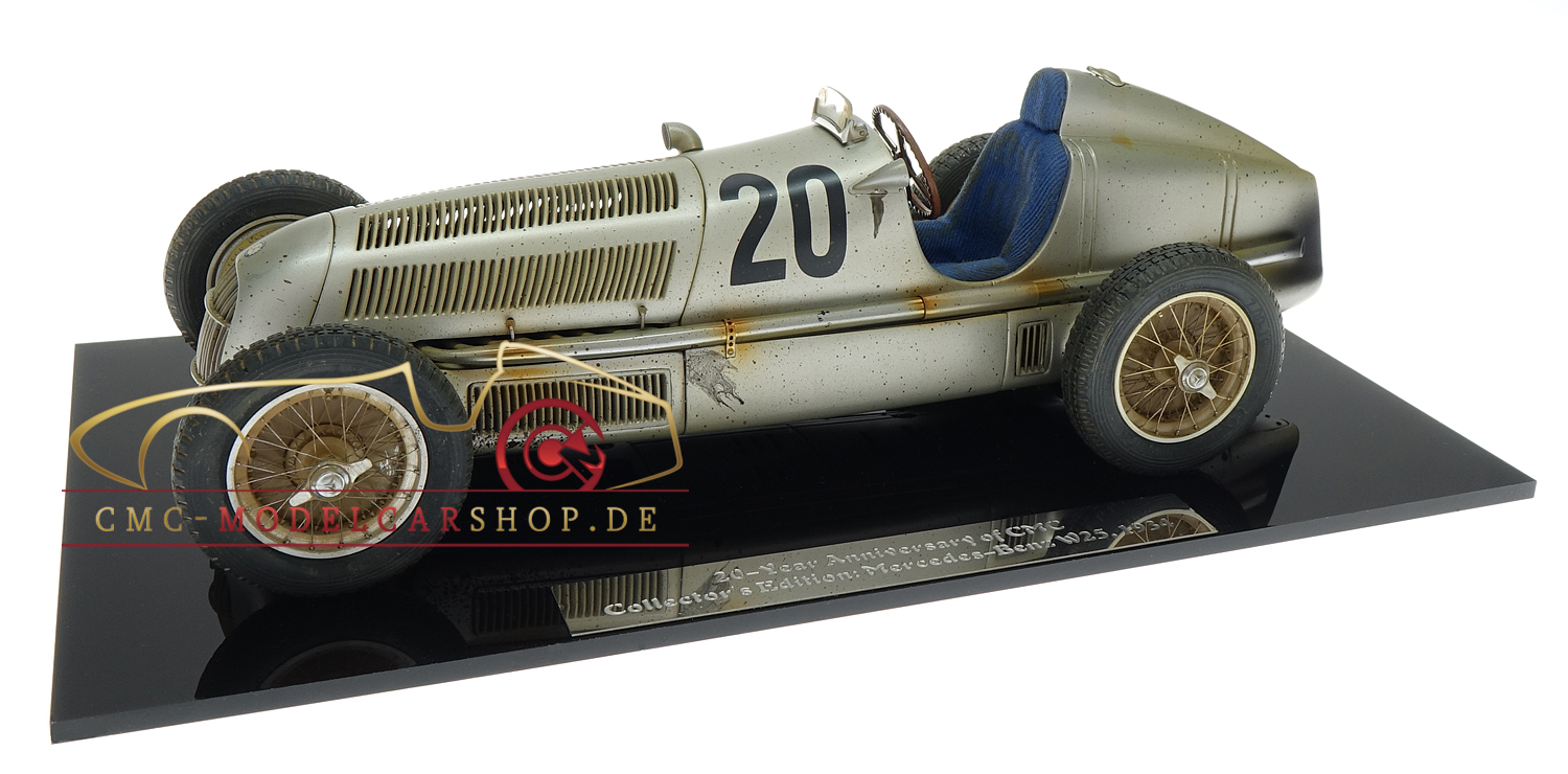 Die Fa. CMC, Classic Model Cars kann im Jahre 2015 auf ihr 20-jähriges Bestehen zurückblicken. Anlässlich dieses Jubiläums präsentiert CMC den Mercedes W25 mit Verschmutzungsoptik als ein ganz besonderes Modell. Diese Sonderedition in einer Auflage von weltweit nur 1.000 Stück wird zusammen mit einer schwarzen, Acryl-Bodenplatte und wertigem Jubiläums-Typenschild angeboten.