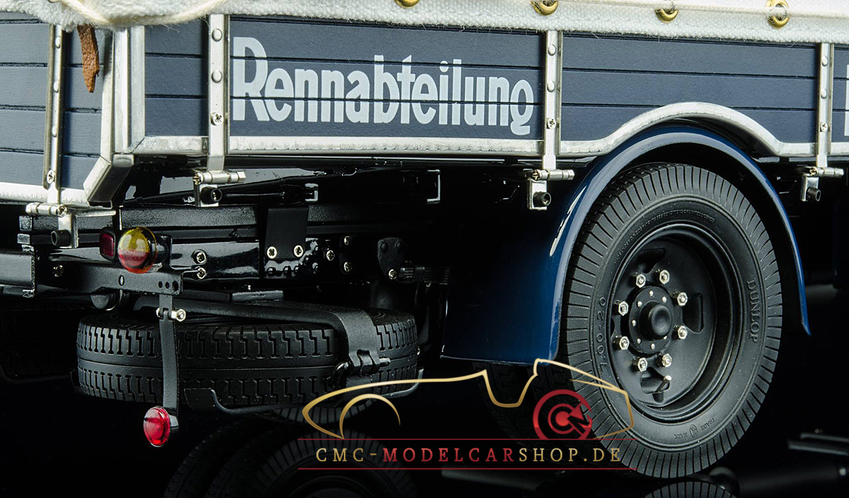 Description of the original vehicle: Equipped with a 65 hp diesel engine, the Mercedes-Benz racing car transporters contributed to the huge success of the Silver Arrows in the 1930s. They were responsible for bringing the cars to the GP race tracks in time, maintaining the supply chain and after a huge win, they trucked a victorious Silver Arrow under a furled tarpaulin cover to the enthusiastic audience.