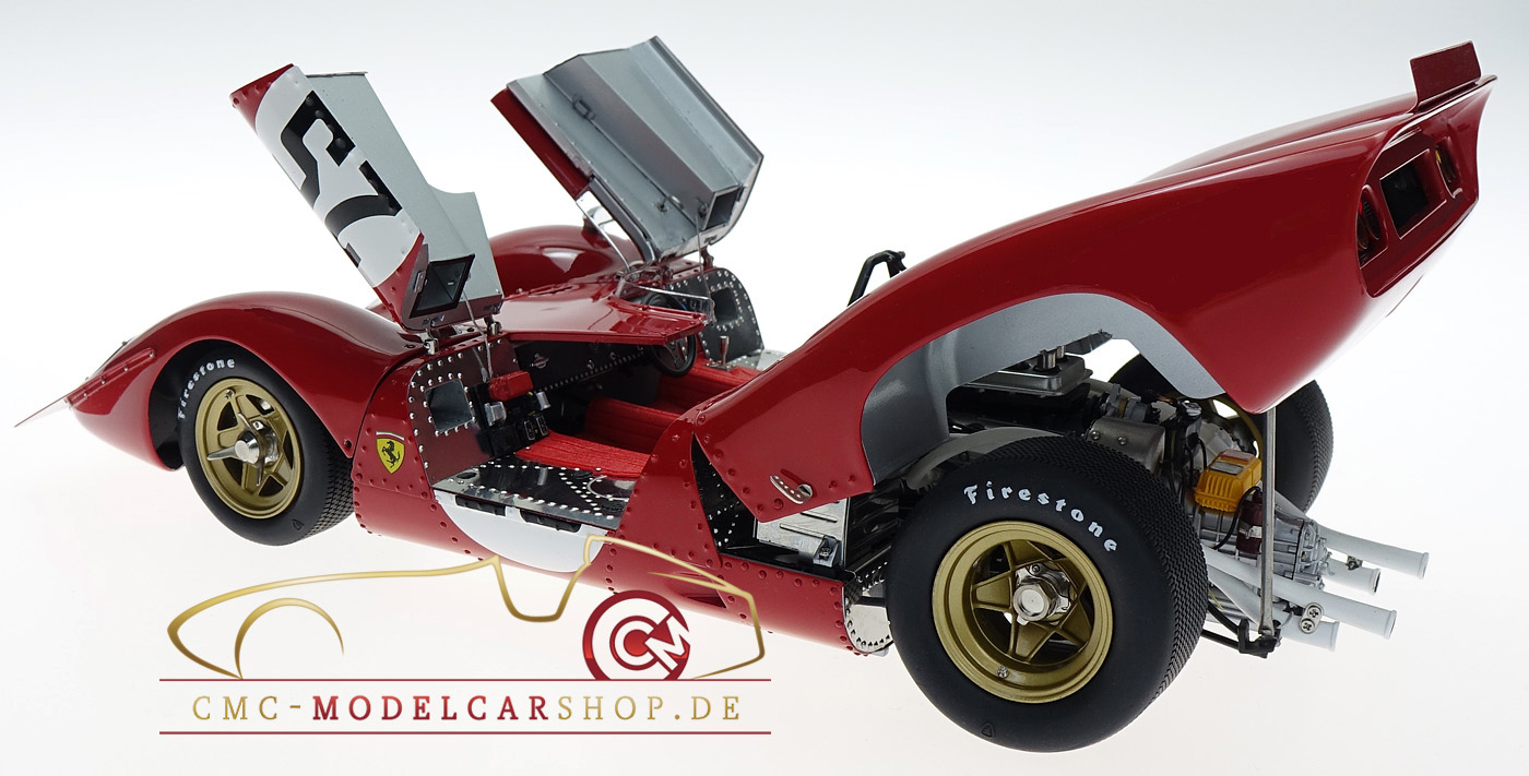 Tout d'abord, un véhicule avec un corps Spyder ouvert et un douze cylindres de trois litres avec 420 ch a été préparé pour la course. La première épreuve de force avec la Porsche favorisée 908, Ford GT 40 et l'Alfa Romeo Tipo 33 a eu lieu le 31 Mars 1969, à la course d'endurance de 12 heures de Sebring / USA. Immédiatement à l'équipe du pilote Chris Amon / Mario Andretti réussi une deuxième place très respectée globale et une victoire de classe. Cette voiture avec le numéro de départ. 25 a tracé la version de course Sebring originale d'un modèle haut de gamme en échelle de 1:18 CMC.