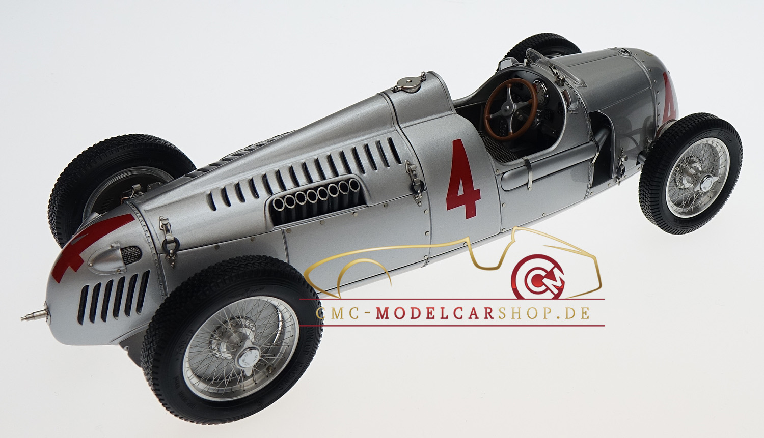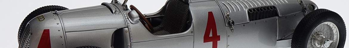 Modèle magnifique dans sa livrée argent avec ses chiffres N°4 en rouge. Ce modèle possède une prestance unique, c’est un élément indispensable dans une collection CMC puisqu’il a gagné le GP d’Allemagne de 1936. La réalisation de CMC est sans reproches comme toujours, merci donc à ce fabricant pour ce très joli modèle.