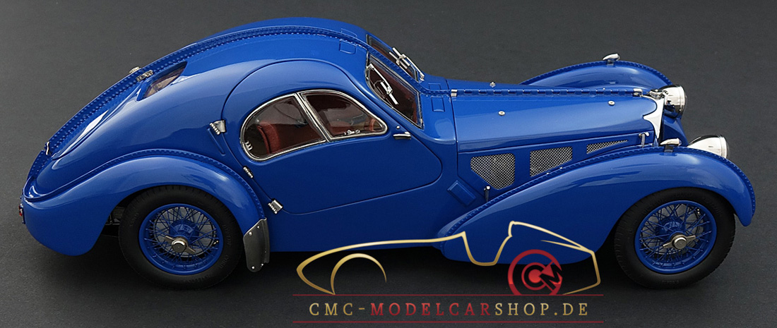 Pour une deuxième Bugatti dans la gamme CMC ce modèle est une réussite, tout est à l’identique au modèle original depuis l’intérieur, les essuies vitres, la reproduction du moteur avec son câblage et cette couleur bleue si particulière. Non seulement le modèle est magnifique et de plus nous serons comblés avec la version restaurée ( propriété de Ralph Laurent ) qui est prévue aussi. Merci CMC pour ces magnifiques réalisations.